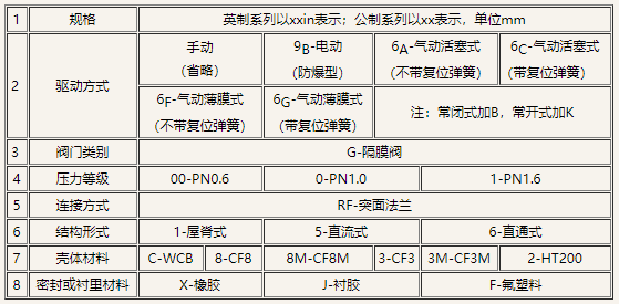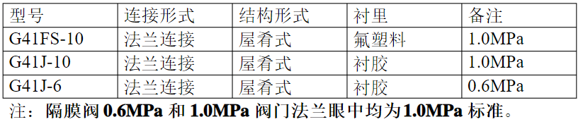 1、隔膜阀型号中未列出的其他特殊要求需在清单中写明;